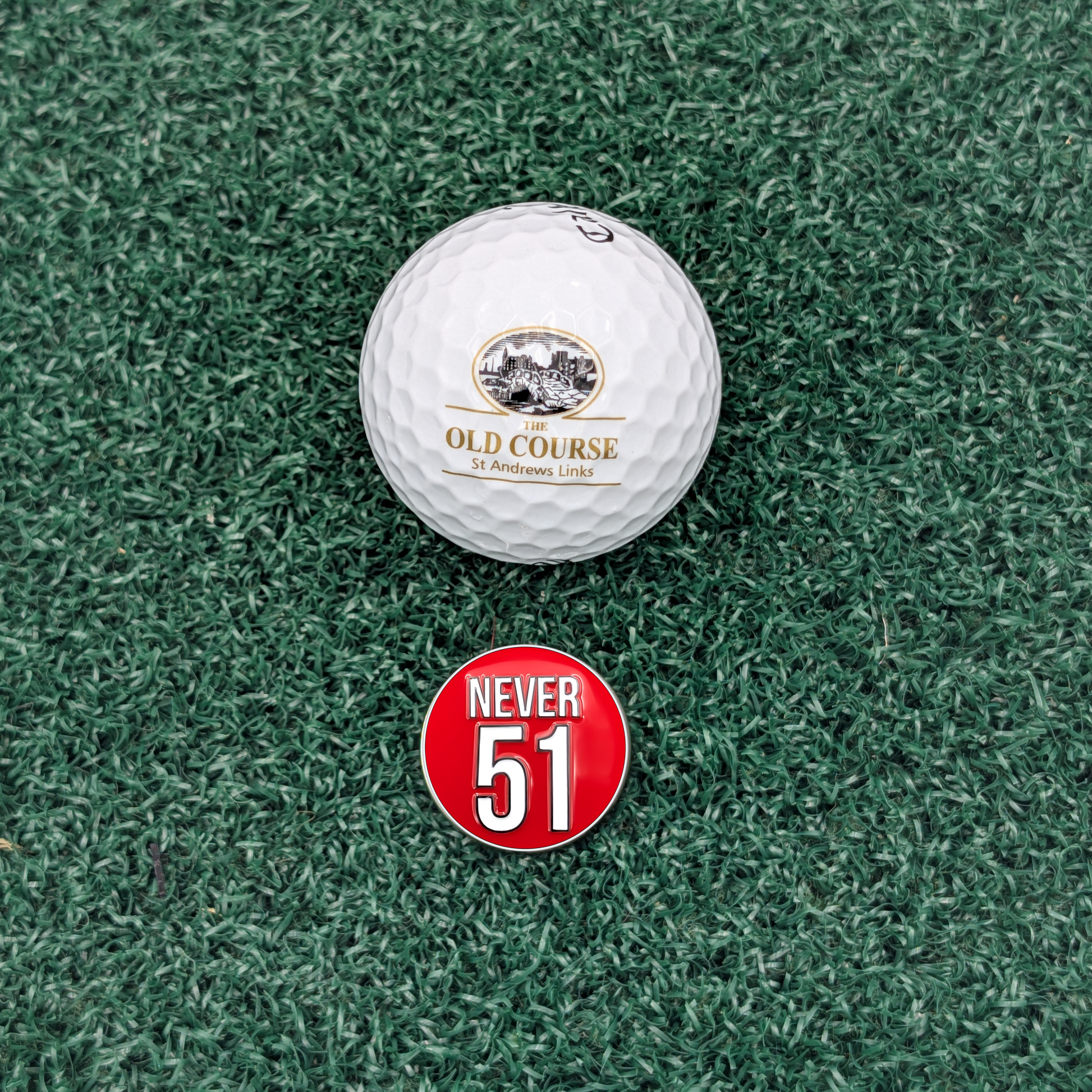 This marker is made for golfers who bring pride and personality to the course. Whether you're gifting it or keeping it, Never 51 says everything that matters—in two bold words.