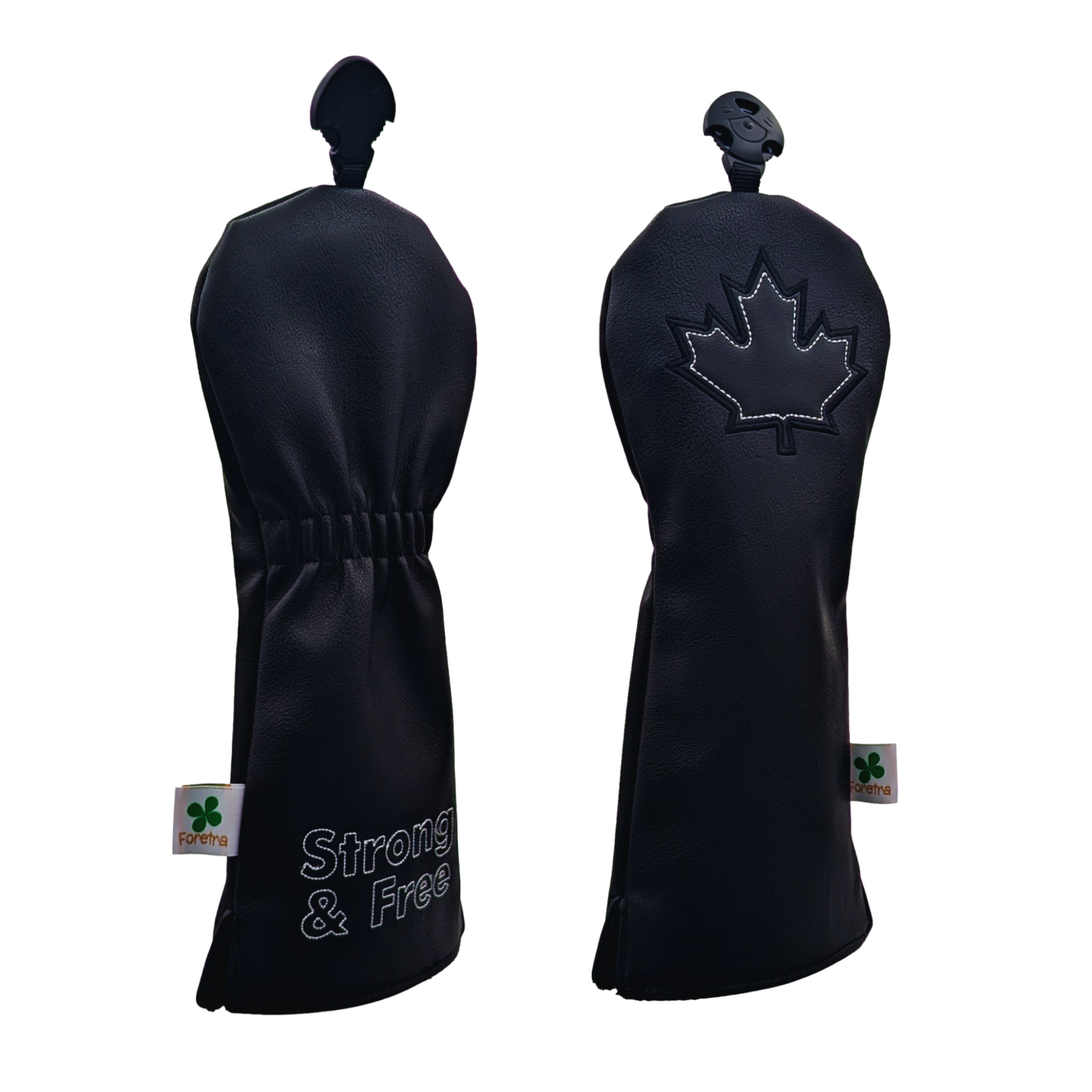 Designed for those who wear their pride with purpose, the Canada Black Maple Leaf Fairway Wood Headcover delivers a sleek look with powerful meaning. Featuring the iconic black-on-black maple leaf embroidery up front and Strong & Free stitched boldly on the back, it’s built to protect your fairway wood while honoring your roots in style. Durable, snug, and made for golfers who prefer gear that speaks softly—but carries weight.